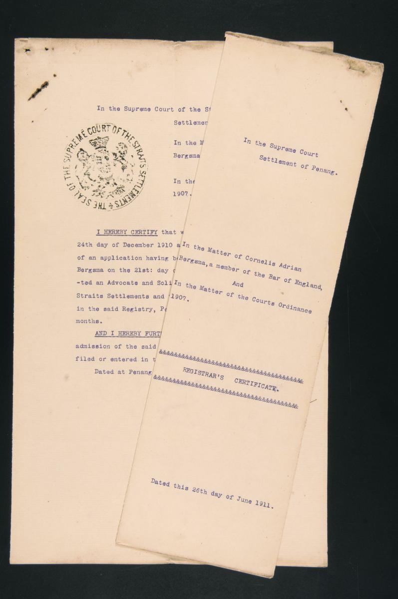 This is an oath sworn by Cornelis Adrian Bergsma on 3 July 1911. It is part of a collection of legal documents from the 19th and early 20th centuries which provides a glimpse into the work of the notable personalities who left their mark on Singapore’s legal history, and the economic and other transactions undertaken by ordinary immigrants in 19th century Singapore that tell stories of misfortune and indebtedness which would otherwise have disappeared from history.