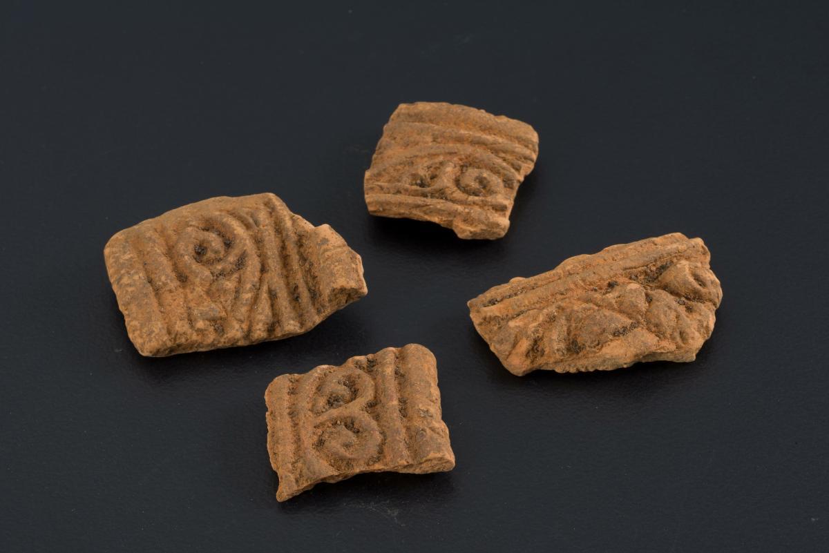The two tiny holes on this piece of silver fragment suggest that this could have been sewn on garments, probably as decoration. The faded vein-like patterns on the ornament add to its decorative attributes.
