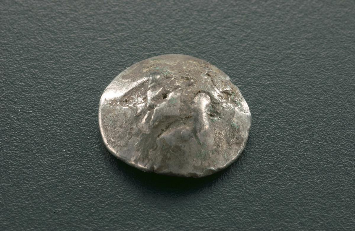 This concave disc-shaped silver coin is stamped with a four-petaled sandalwood flower design within a square depression. On the reverse side, the silver coin is inscribed with the Sanskrit character ‘ma’, which perhaps refers to ‘masa’, a measurement of weight to indicate the weight of silver the coin was supposed to contain. Javanese coins were used as currency around the 7th century to about 1350, when Chinese bronze coins replaced them as the main medium of exchange. Silver coins were generally more widely used in Java than gold coins.