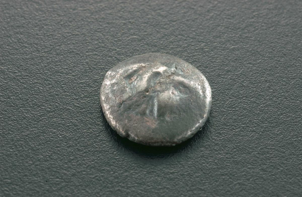 This concave disc-shaped silver coin is stamped with a four-petaled sandalwood flower design within a square depression. On the reverse side, the silver coin is inscribed with the Sanskrit character ‘ma’, which perhaps refers to ‘masa’, a measurement of weight to indicate the weight of silver the coin was supposed to contain. Javanese coins were used as currency around the 7th century to about 1350, when Chinese bronze coins replaced them as the main medium of exchange. Silver coins were generally more widely used in Java than gold coins.