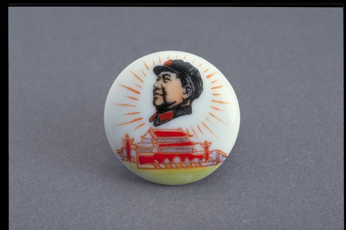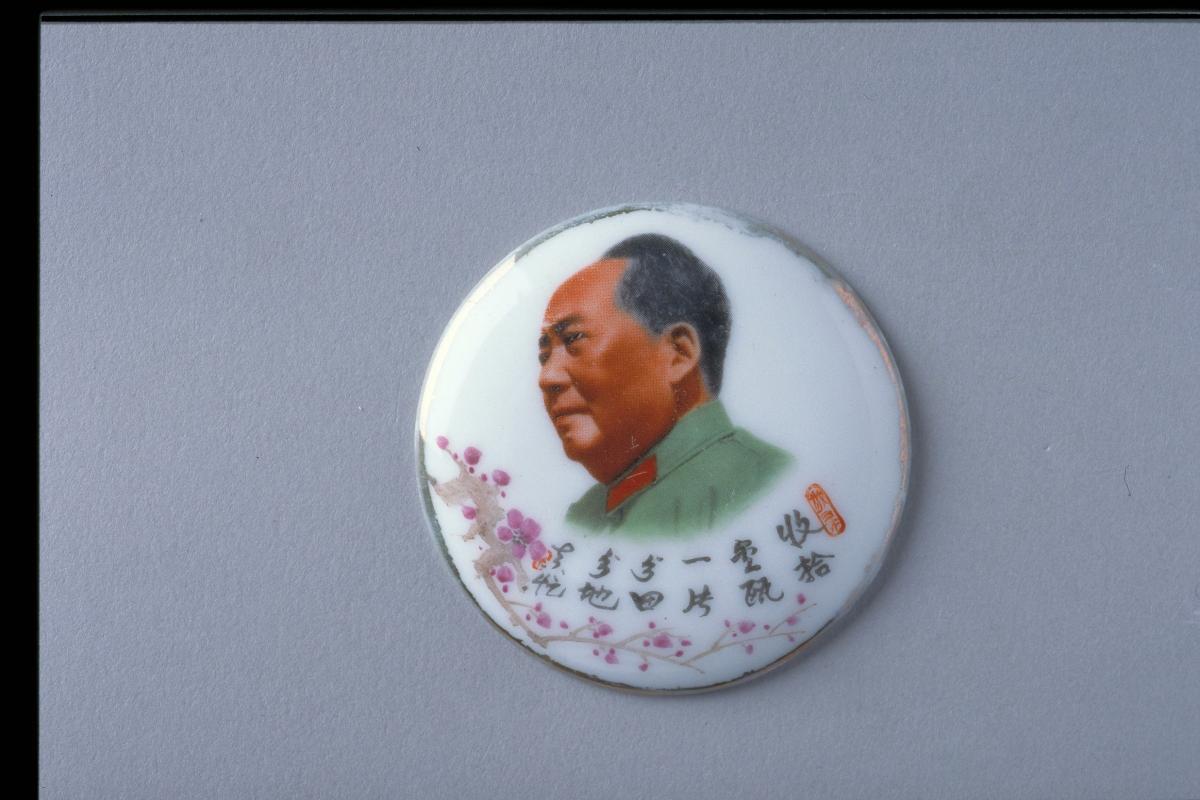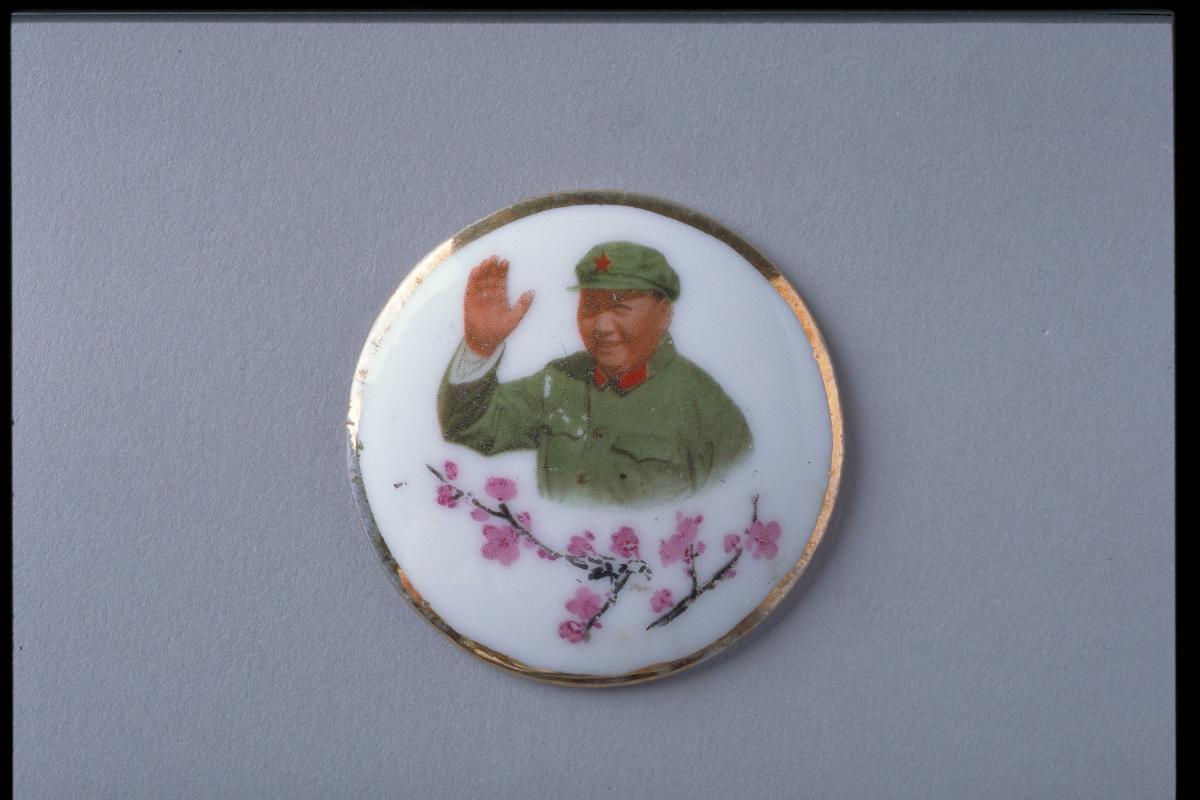 Regarded as a symbol of endurance, the plum blossom has been a favoured motif in Chinese art for centuries. Used on Mao badges, it has come to signify the communists’ perseverance in the revolutionary struggle. Huge numbers of badges were produced at the height of the Cultural Revolution, from 1966 to 1969. Materials ranging from plastic and bamboo to gold were used to manufacture badges, but aluminium was by far the most common material. Porcelain badges such as these were actually produced for only a short span of time (about a year). Their fragility may have contributed to the decline in their production.