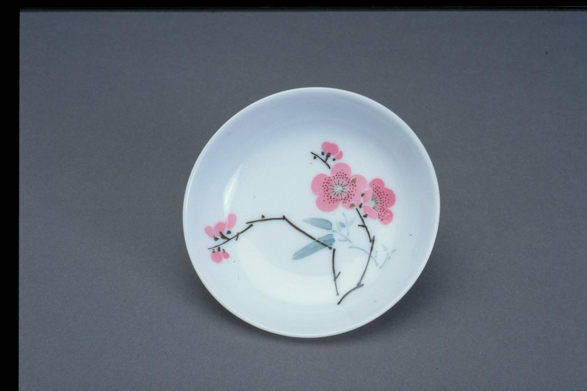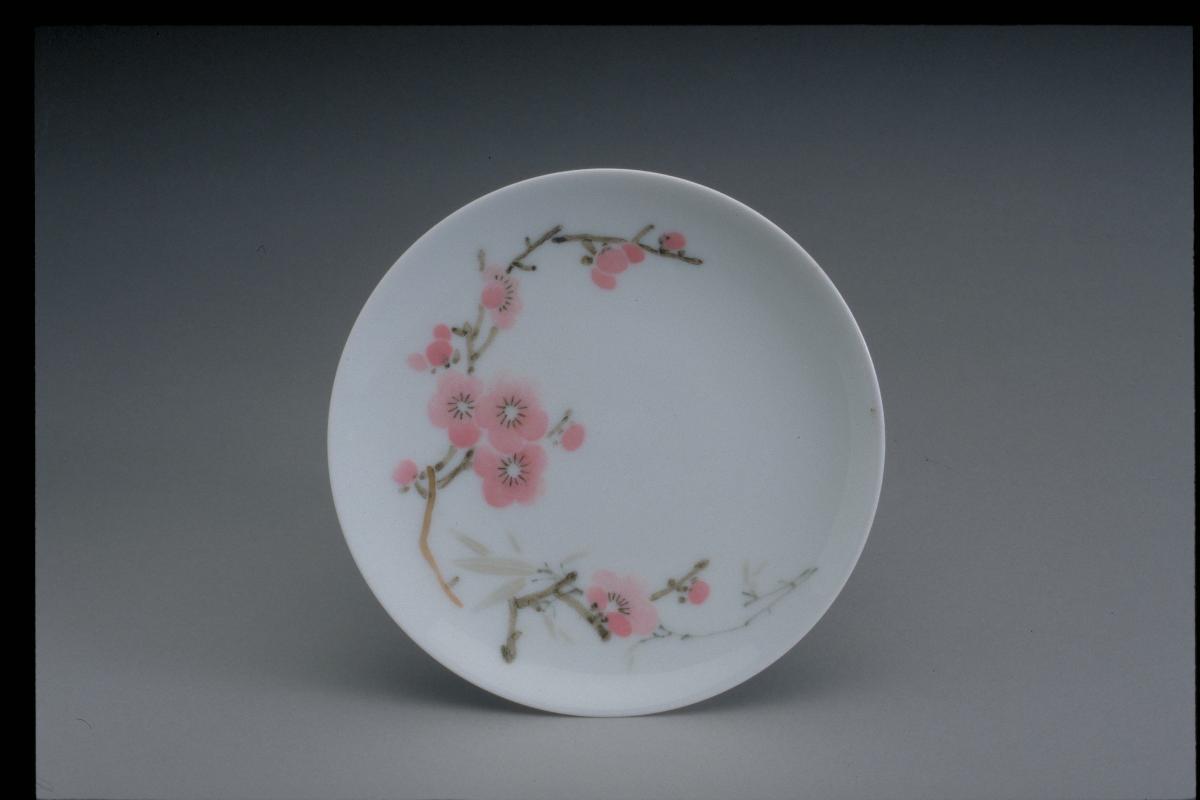 This pure white, reproduction porcelain platter with overglazed plum blossom design is a style of ceramics made for the exclusive use of Chairman Mao. These were used at Zhongnanhai, the home of the highest ranking members of the Communist party in Beijing. Other items in the set include bowls, tea spoons, dishes, ashtrays, vases and other decorative pieces.The plum blossom motif has been popular in Chinese art for centuries. Regarded as a symbol of endurance, it has come to signify the communists’ perseverance in the revolutionary struggle.