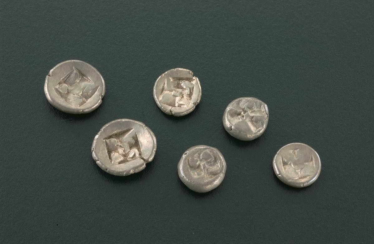 This coin, also known as ‘piloncito’, is stamped on one side to produce a rounded depression with a line down the middle, and a single raised dot on either side of this line. On the reverse side, it may be inscribed with Sanskrit characters, curves, or grid marks. Javanese coins were used as currency around the 7th century to about 1350, when Chinese bronze coins replaced them as the main medium of exchange.