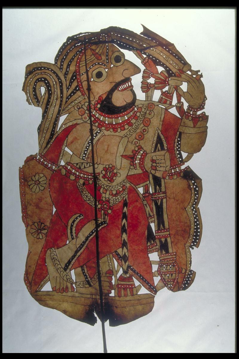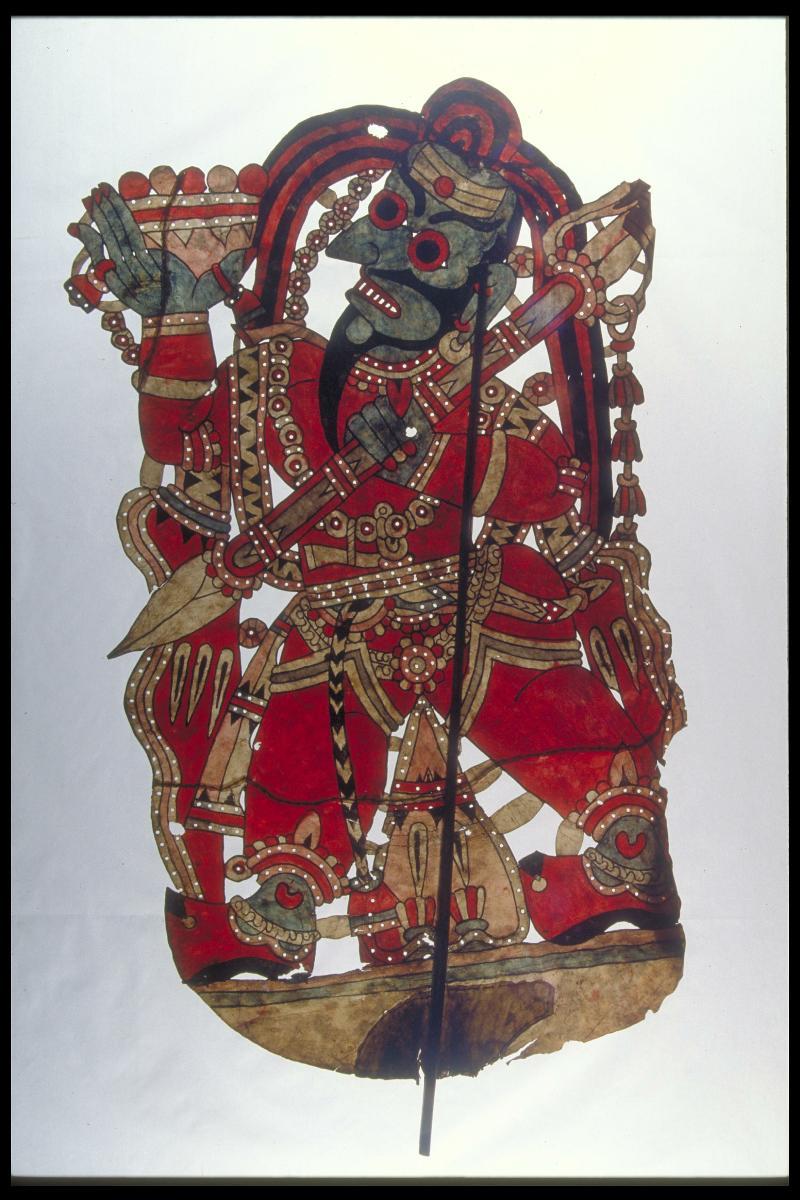 This puppet represents the Golden Deer from the Hindu epic, the Ramayana in the Balinese 'wayang kulit' or leather shadow puppet theatre tradition. Maricha, the demon, assumes the guise of the deer in order to distract Ramadewa (Rama) and Laksmana (Lakshmana) away from Dewi Sita (Sita). The Ramayana relates the struggle of Rama and his brother Laksmana (Lakshamana) in the rescue of his wife, Dewi Sita, from the ogre king Rawana (Ravana).The majority of the 'wayang kulit' plays performed are drawn from the two great Hindu epics, the Mahabharata and the Ramayana as well as local stories. 'Wayang kulit' in Bali is like traditionally performed in temples, although today more likely to be viewed as entertainment for tourists.