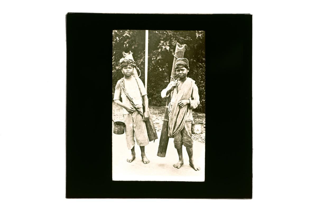 Glass negative of two girls