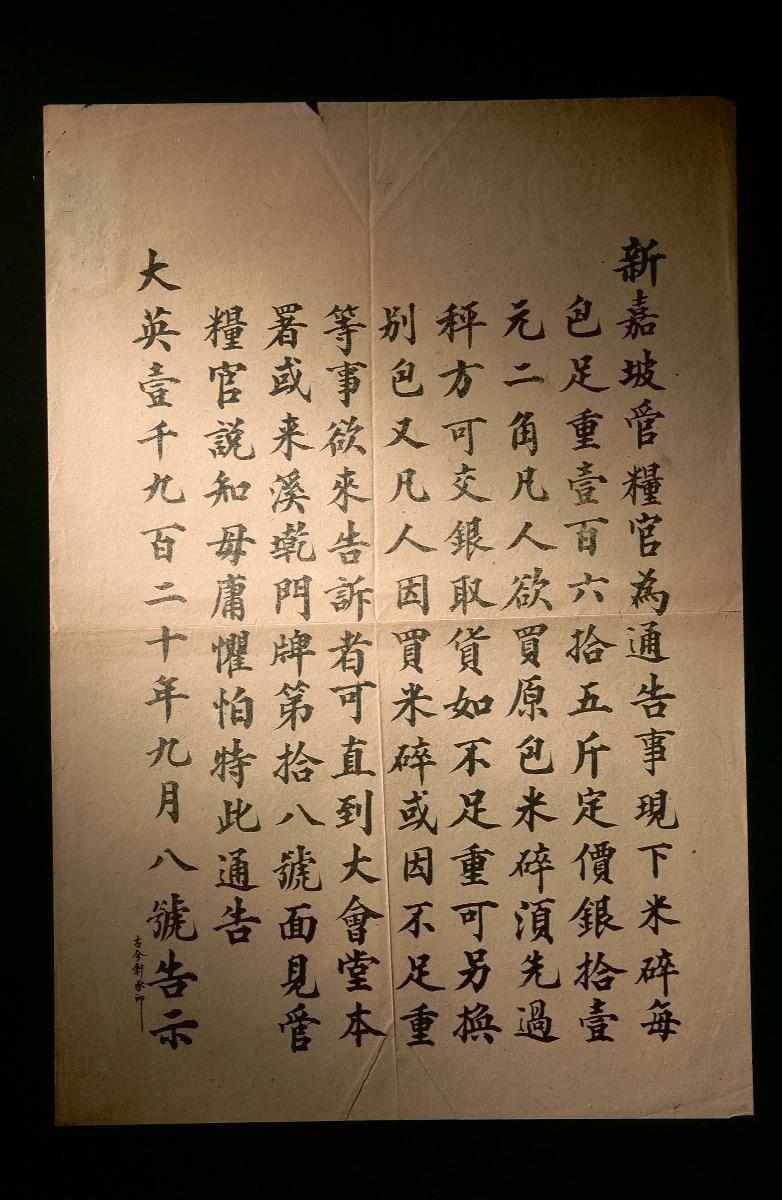 A collection of vermillion stamps printed on paper. These stamps belonged to the Chinese secret societies in Singapore and the Hong stamp in the middle was used for the validation of membership certificates that had to be carried around for identification purposes. Other stamps such as the 'shun tian xing dao' (obey heaven and follow the way) tell of the beliefs of the societies while 'fan qing fu ming' allude to the founding of the organisations. Secret societies in Singapore were set up in the 19th century with increased Chinese migration to the British colony to provide mutual aid and support for the migrants. These societies had originated from the Tiandihui, which in turn was a local version of the secret society in China that was a sworn fraternity of men with the common aim of overthrowing the Qing dynasty and restoring the Ming. Various splinter groups (hui or kongsi) subsequently emerged among the main dialect groups.