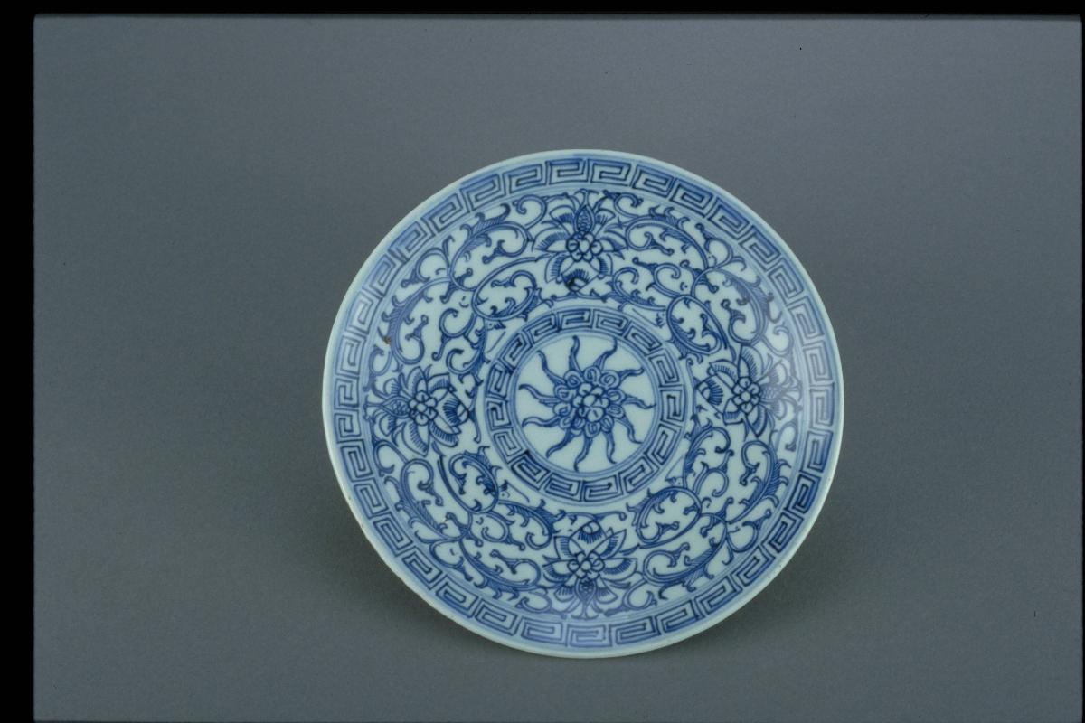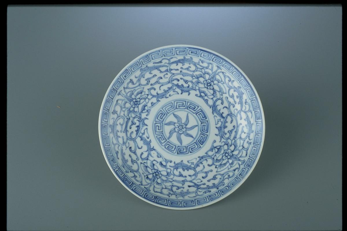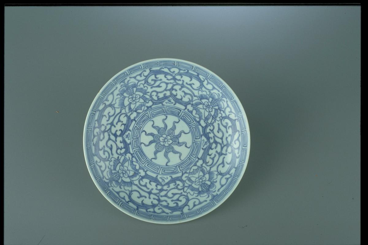 Chinese blue and white porcelain ware was widely used in Southeast Asia. It was cheaper and more durable than polychrome enamel ware. It was used by the Peranakan Chinese mainly for ancestral offerings and for making offerings during funeral ceremonies, as blue (a substitute for black) and white were their traditional colours of mourning. However, such wares were common and thus not exclusive to the Straits Chinese household. This particular dish features floral and foliage motifs.