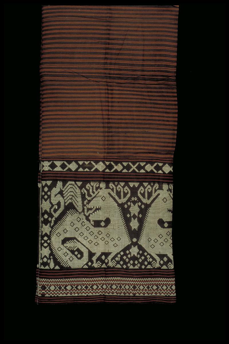 This tube skirt is made from handspun cotton with natural dyes. It features a Missoni-like design.