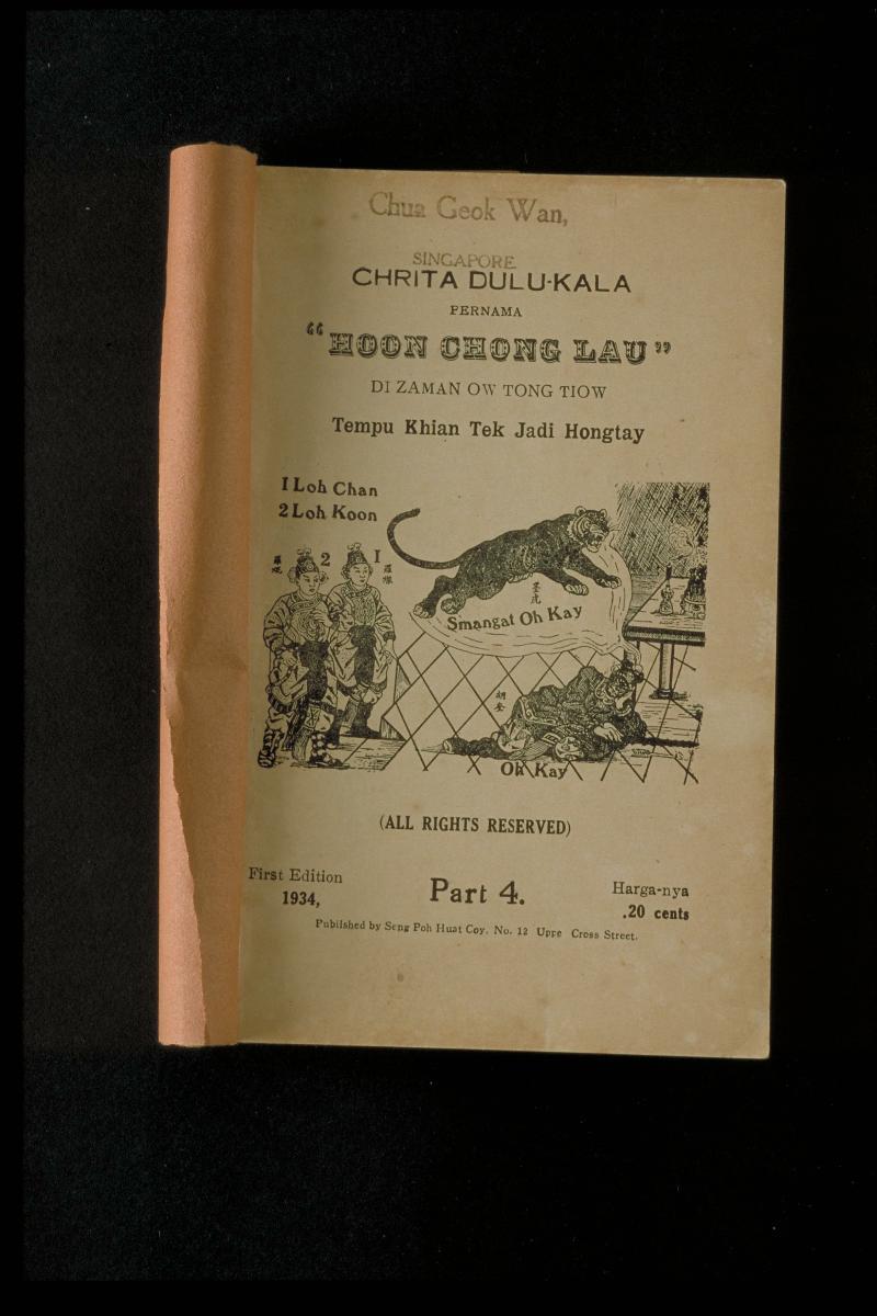 ‘Chrita Dulu Kala’, loosely translated as ‘Stories from Ancient Times’, were books written (by several authors) at the turn of the 20th century up to the 1950s and were immensely popular within the Peranakan Chinese community. Written in serialised format, they tell stories from Chinese folklore, legends and historical epics such as ‘Journey to the West’ and ‘Romance of the Three Kingdoms’. The books were published periodically and, from the 1930s, contained advertisements for goods and services.