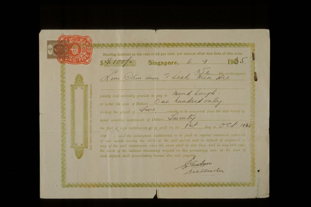 Promissory note issued by the Chettiars