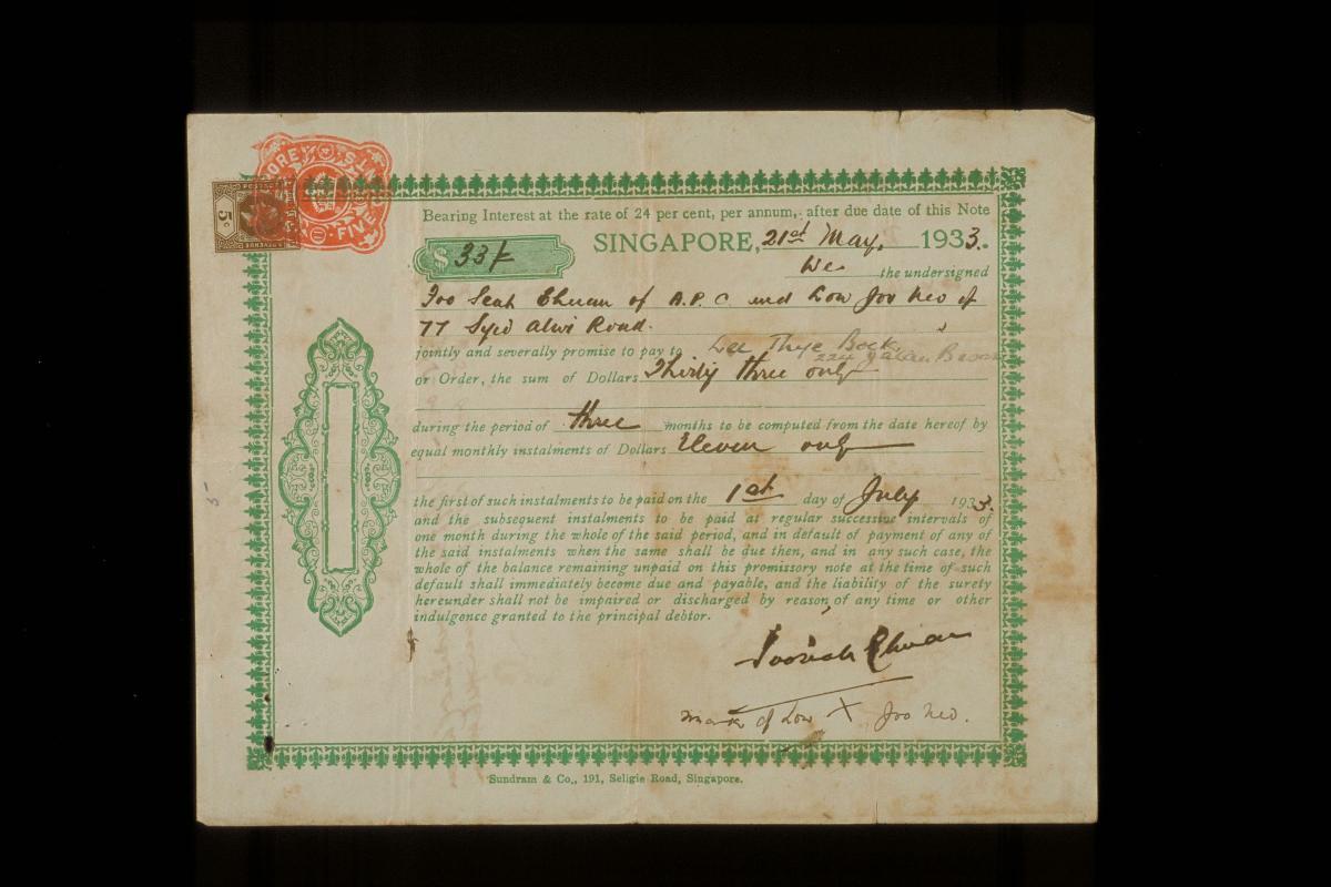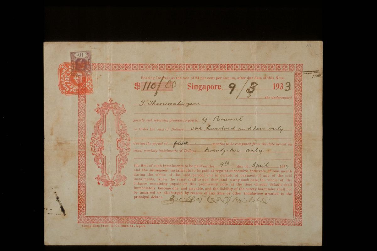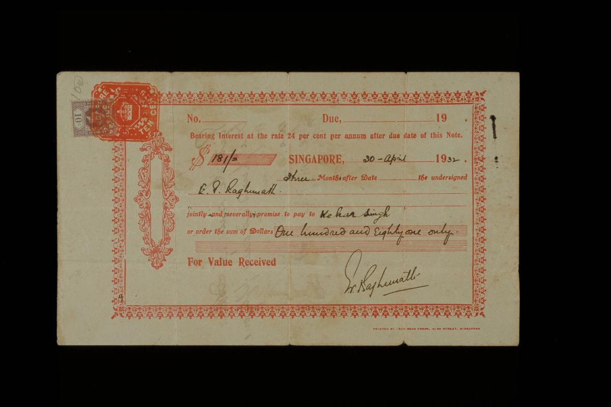 Promissory note issued by the Chettiars
