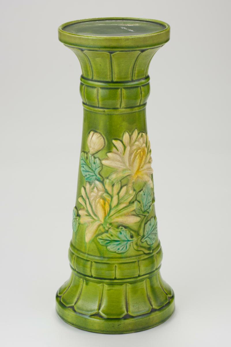 These decorative pedestals with flower pots were found in many European and Peranakan Chinese homes. These would usually be displayed on a sideboard in the living room, together with porcelain figurines and plates, crystal vases, silver urns and Venetian glassware.