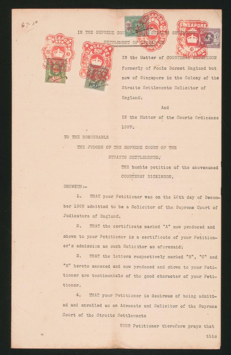 This is the declaration of Courtenay Dickinson made on 12 May 1910. It is part of a collection of legal documents from the 19th and early 20th centuries which provides a glimpse into the work of the notable personalities who left their mark on Singapore’s legal history, and the economic and other transactions undertaken by ordinary immigrants in 19th century Singapore that tell stories of misfortune and indebtedness which would otherwise have disappeared from history.