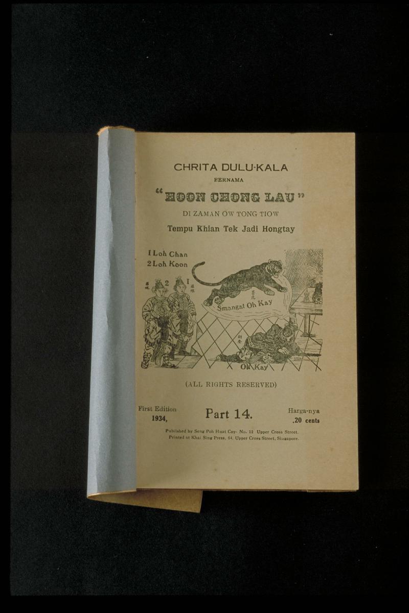 ‘Chrita Dulu Kala’, loosely translated as ‘Stories from Ancient Times’, were books written (by several authors) at the turn of the 20th century up to the 1950s and were immensely popular within the Peranakan Chinese community. Written in serialised format, they tell stories from Chinese folklore, legends and historical epics such as ‘Journey to the West’ and ‘Romance of the Three Kingdoms’. The books were published periodically and, from the 1930s, contained advertisements for goods and services.