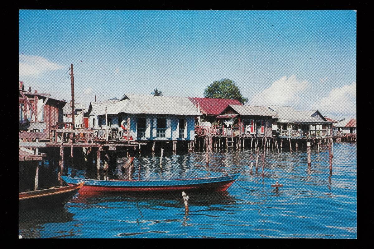 This is a postcard of a Malay fishing village. Most of the early Malay 'kampongs' were fishing villages built along the coasts and rivers. Fishing was the main source of income for many Malays at the time.