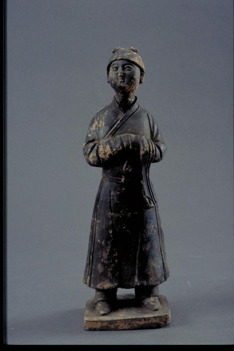 This glazed porcelain figurine of a Chinese man dressed in loose robes is modelled with a smiling face and an expressive body language. The hands and legs of this figurine are partially broken. Found with a sizable cargo of Chinese export ceramics and porcelain uncovered from a late 17th century shipwreck near Vung Tau, Vietnam, figurines such as this are unique and no comparable pieces has yet been found. It is not known if they had a specific function or were simply decorative pieces, or if they were meant for the Asian or European market.