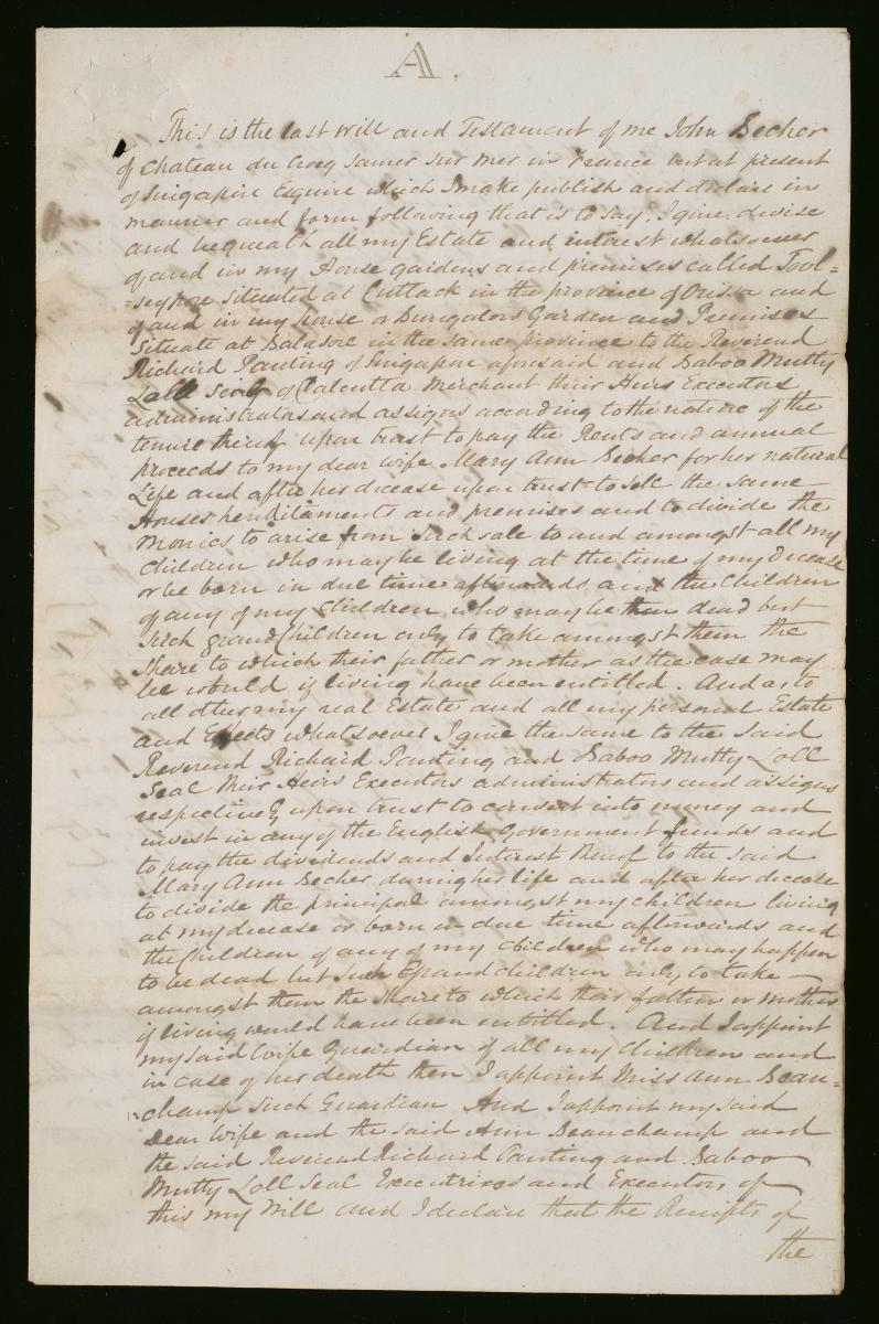 This is the last will and testament of Jacob Clunis. It is part of a collection of legal documents from the 19th and early 20th centuries which provides a glimpse into the work of the notable personalities who left their mark on Singapore’s legal history, and the economic and other transactions undertaken by ordinary immigrants in 19th century Singapore that tell stories of misfortune and indebtedness which would otherwise have disappeared from history.