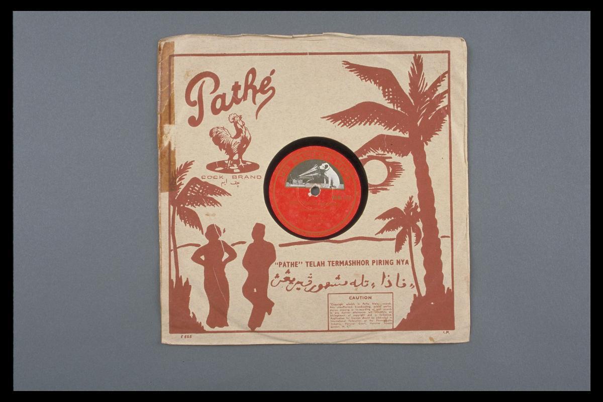 This is a photograph of a Malay pop song vinyl record (or gramophone record) made in the 1950s to 1960s. Until the 1960s, the majority of these records were produced in India. Before World War Two, Malay songs were ‘Bangsawan’, ‘Dikir Barat’, ‘Keroncong’, ‘Ghazal’ or copies of Indonesian songs. In the late 1940s, however, Malay singers started to infuse different styles into their music. Ranging from Indian film music to Western popular music, these styles were modified and adapted in the Malay context to create a new sound, thus allowing Malay music to develop a new identity and its own cultural substance. In addition, folk songs (and some traditional songs) were increasingly modernised and popularised during this period to go along with this new identity. These Malay singers and their songs became very popular especially in the urban areas. Singapore was the centre of the bourgeoning Malay entertainment industry, which included music and films, from the 1940s to the 1960s.