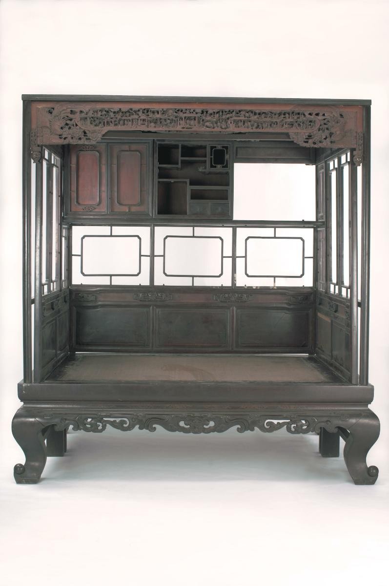The wooden parts of this Qing day bed are left unadorned but the proportion of the bed lends it a sense of stateliness, which makes the bed seem larger than in reality. This modestly styled furniture is characteristic of most Fujianese furniture of longyan wood. Called 'ta', the day bed is an informal piece of furniture long favoured by the literati, in particular, for use in the study, where it had multiple purposes. The longyan (more commonly, longan, in Cantonese) tree was a regional specialty of Fujian province, only cultivated for fruit by Fujianese entrepreneurs during the Ming dynasty (1368-1644), together with tea and other cash crops, such as the lychee. It was only in the Qing dynasty (18th century), as the old longyan trees were being felled en masse, that the timber was found to be highly suitable for making furniture. The longyan’s aesthetic quality was seen to be comparable to that of the more established hardwoods such as blackwood (shuanzhi) and zitan.