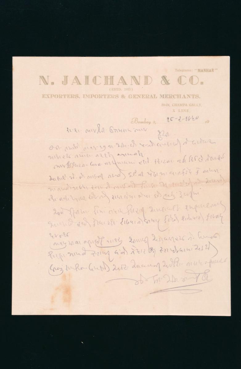 Sri Uttamram Ghelabhai’s correspondence in Gujarati