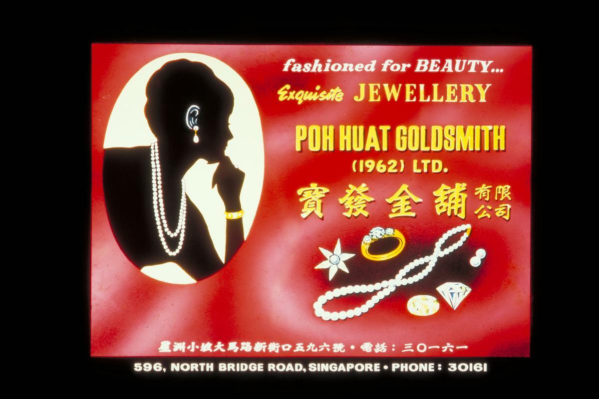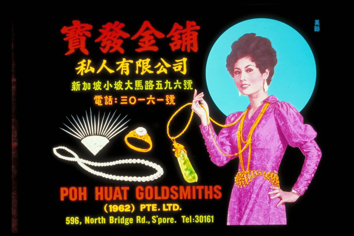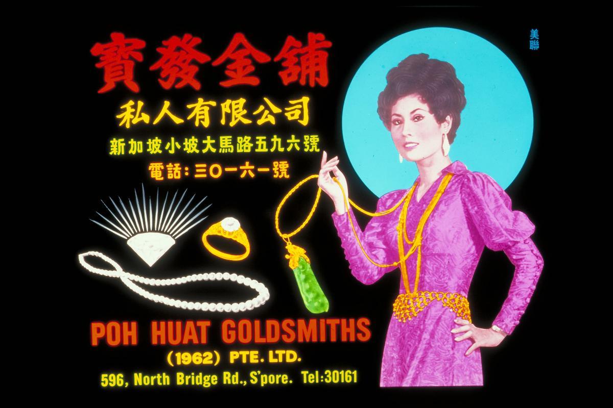 Tin tray with advertisement for Poh Heng Goldsmiths