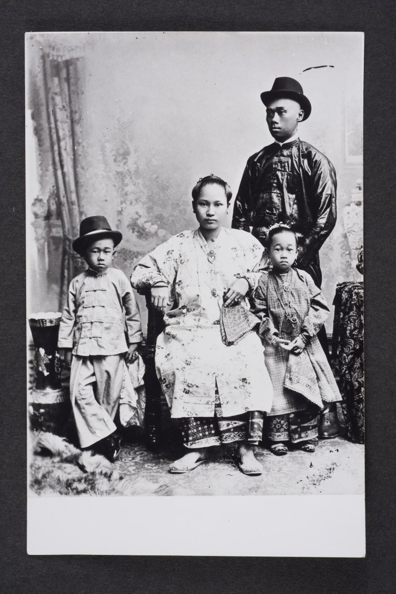 In the photograph, the men and boys are wearing Western attires while the girls are wearing a mixture of Western and traditional Chinese attires.The collective term, “Straits Chinese”, refers to the Peranakan Chinese in the former British Straits Settlement – Singapore, Penang and Malacca. The term “Peranakan Chinese” refers to the descendents of Chinese immigrants who began settling in the Malay Archipelago in the 15th century and assimilated themselves in the local culture which eventually led to the creation of a hybrid community unique to this part of the world. The distinctive and rich Peranakan Chinese identity and culture are a result of the amalgamation of Malay, Chinese and other influences.