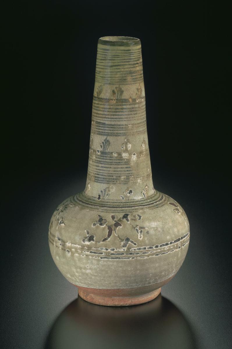 This oval shaped bottle with carved geometric decorations probably belonged to a Sufi (mystic), also known as darwish in Persian (from which we get the English term ‘dervish’). Carved from a coconut shell with simple floral patterns, this modest bottle was used as a water container. It one of the few possessions of the darwish, who undertook voluntary poverty and ascetism in their pursuit for spiritual closeness to God.