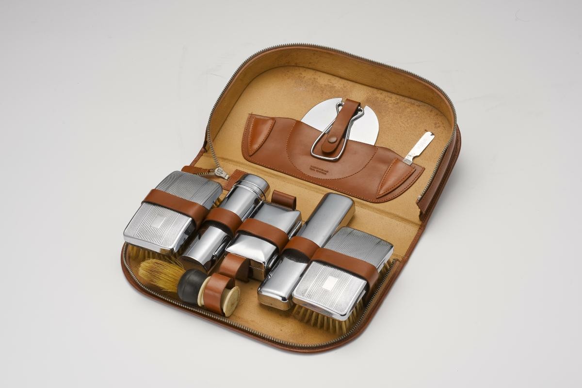In the 1920s, women began to go out more and paid greater attention to their appearance and aesthetic choices. They were inspired by Hollywood movies and imported magazines. This is a vanity set consisting of a brush, comb, mirror and powder box (see 2006-00251 to 2006-00254). Each item in the set is richly embossed with floral patterns of the Art Nouveau style. Vanity sets like these were found in luxury department stores such as John Little & Co. They were usually sold in a silver case, complete with hair curlers, manicure instruments and a table mirror.
