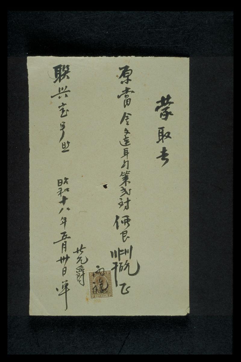 The Japanese Military Administration took over control of Malaya (Malaysia) and Singapore during the Japanese Occupation from 1942 to 1945. This document bears an official seal from the administrative branch in Malacca.