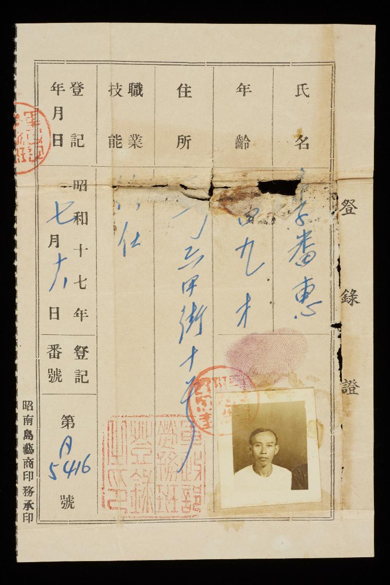 Japanese Occupation Document - Certificate of landing no. 20688 in Japanese and Chinese characters