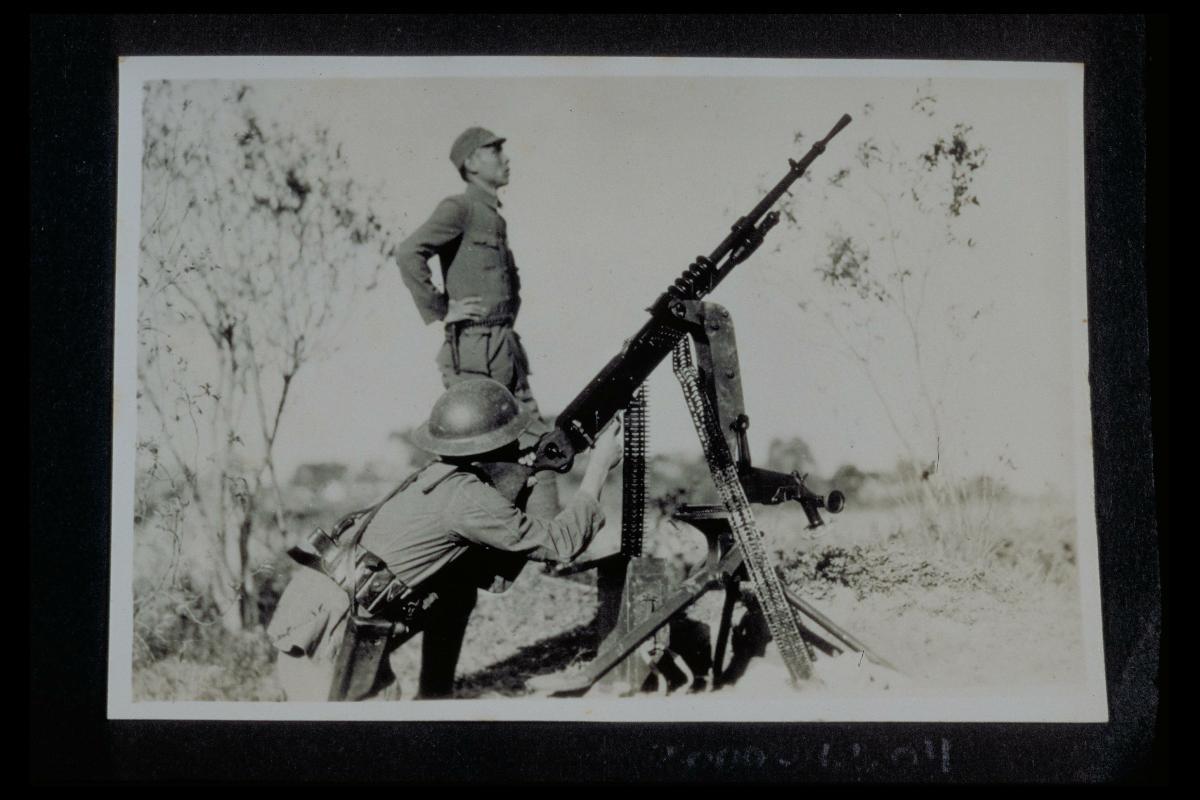 Japanese Occupation in Shanghai - A soldier with a gas mask on