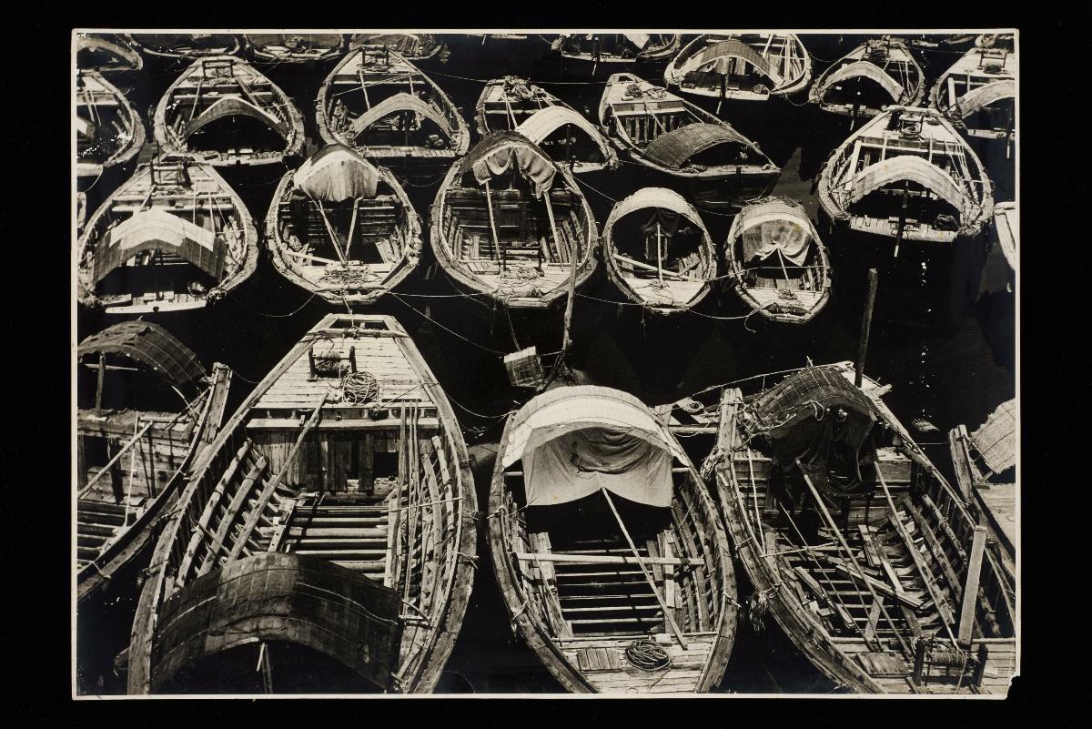 Sampans are flat-bottomed Chinese boats made of wood. It is usually used for transportation or fishing in coastal areas or rivers. Bigger boats can be seen in the background.