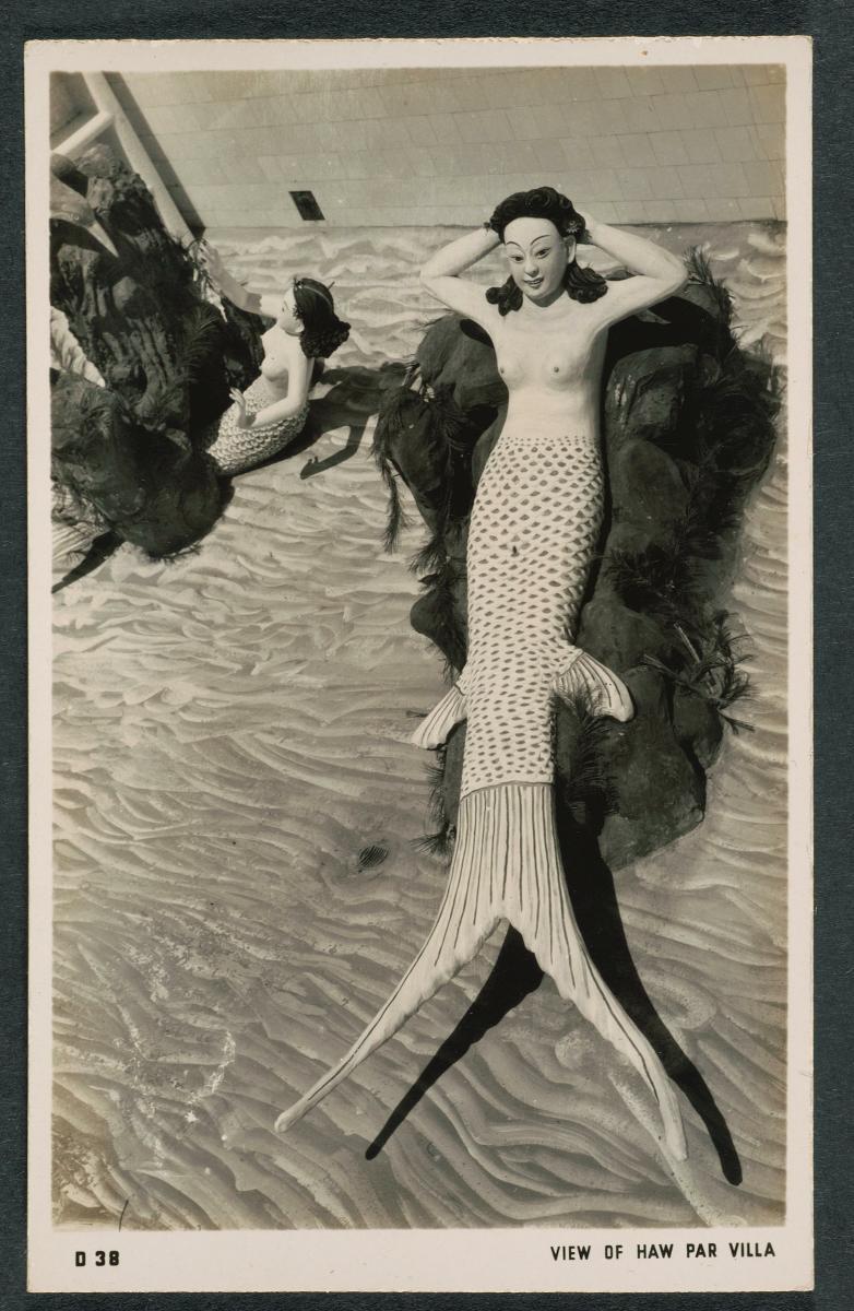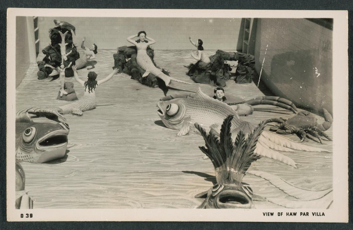 Apart from themes illustrating Chinese folklore and legend, other forms of displays can also be seen throughout Haw Par Villa. Here, sculptures of red carps can be seen housed in what was once a swimming pool, where statues of mermaids can also be seen. Originally called Tiger Balm Gardens, the theme park was built by Aw Boon Haw in 1937 with the intention of educating the public about Chinese culture.
