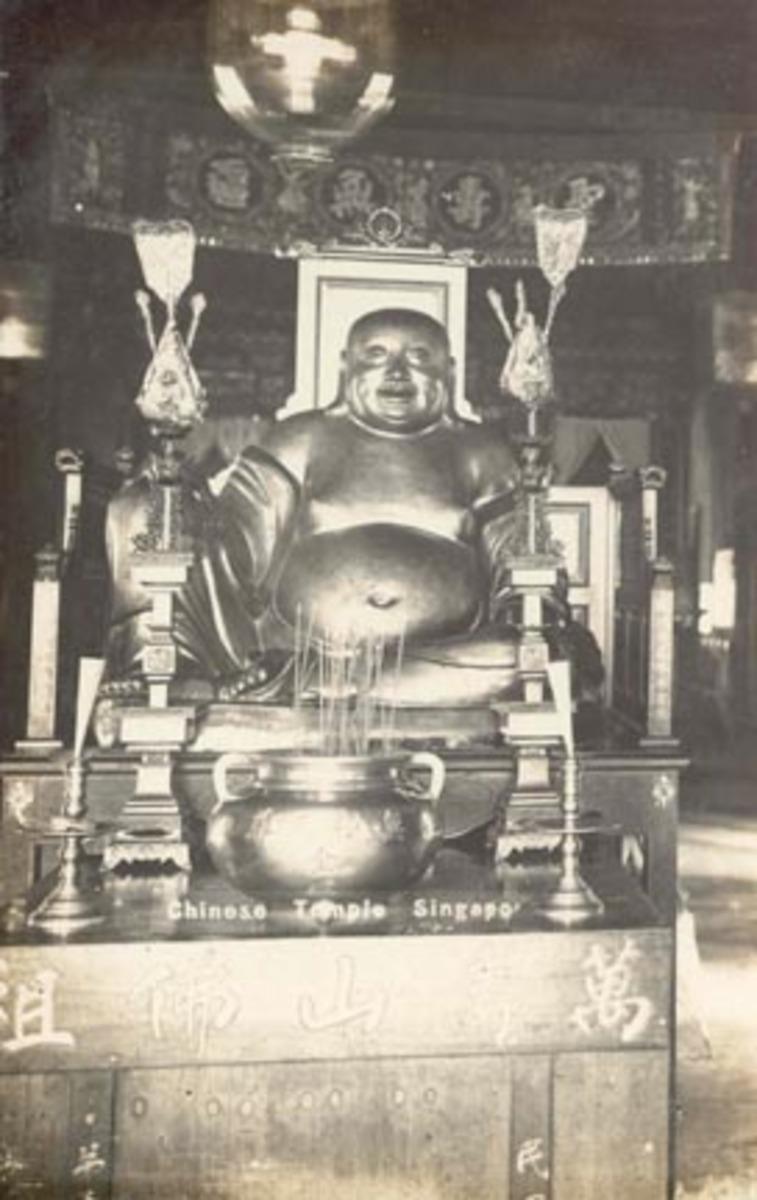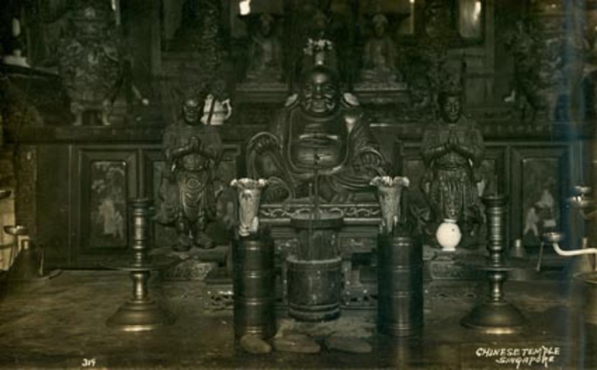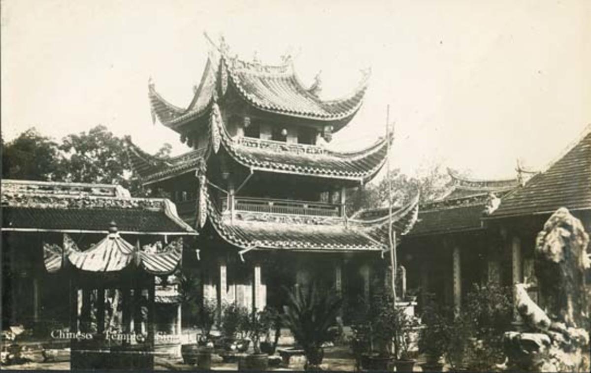 The Chinese temple depicted here is the Thian Hock Keng temple, where the Chinese gave thanks for enjoying safe travel on the seas. The temple was located at the coastline until 1879, after which reclamation work left it inland.This print (lithograph) was published in Charles Wilkes' 'Narrative of the United States Exploring Expedition during the Years 1838-42', vol.v in 1845.