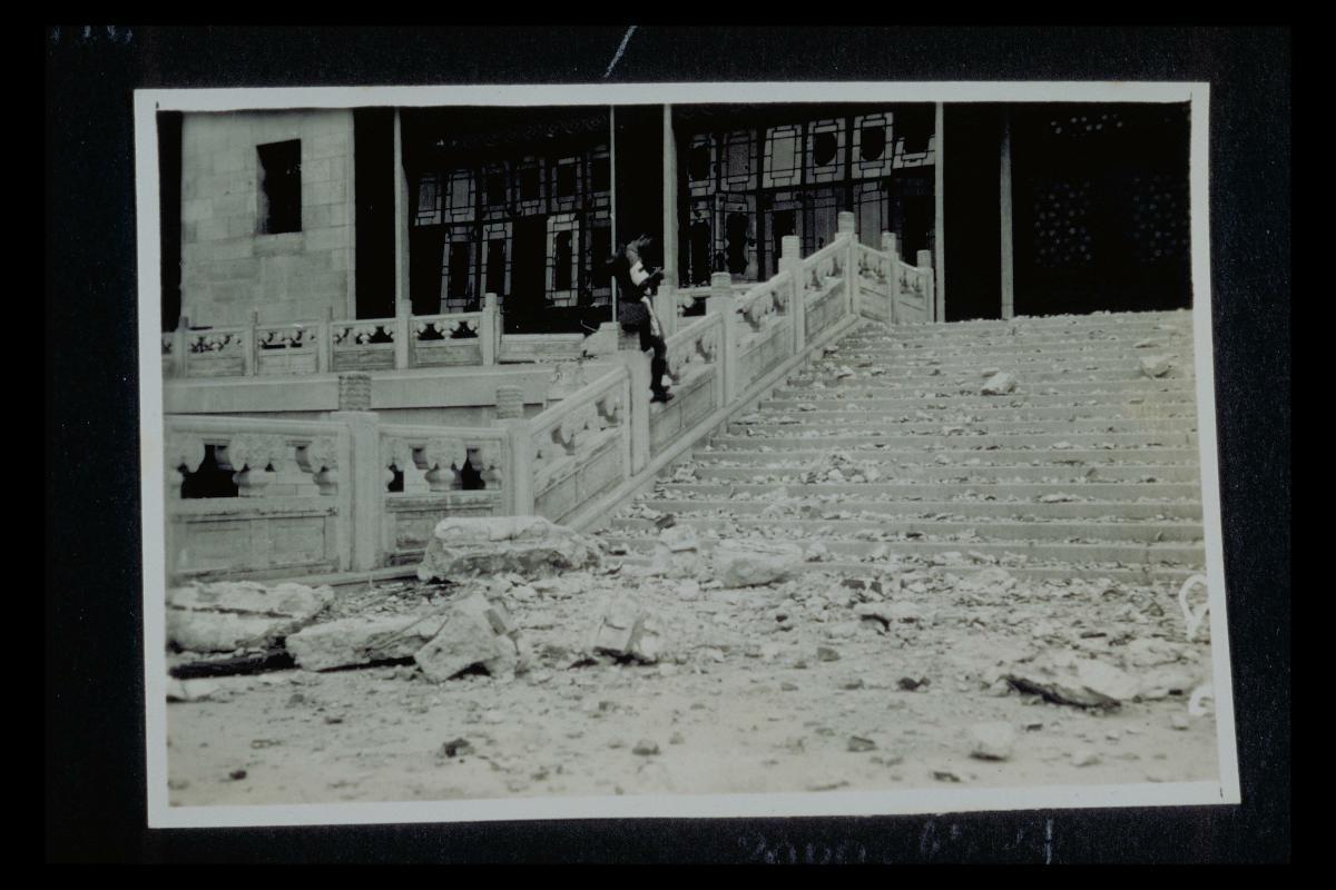 Japanese Occupation in Shanghai - Chinese building with roof damaged by bullet holes