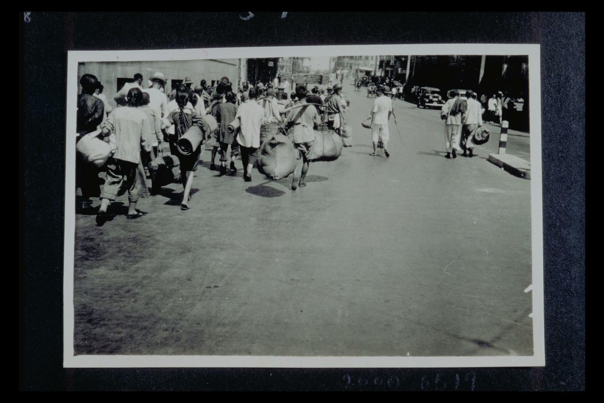 Shortly after the onset of the Second Sino-Japanese War in 1937, the cosmopolitan Shanghai city fell under the control of the Japanese forces. This photo shows a group of civilians on the back of a truck under the charge of two policemen.