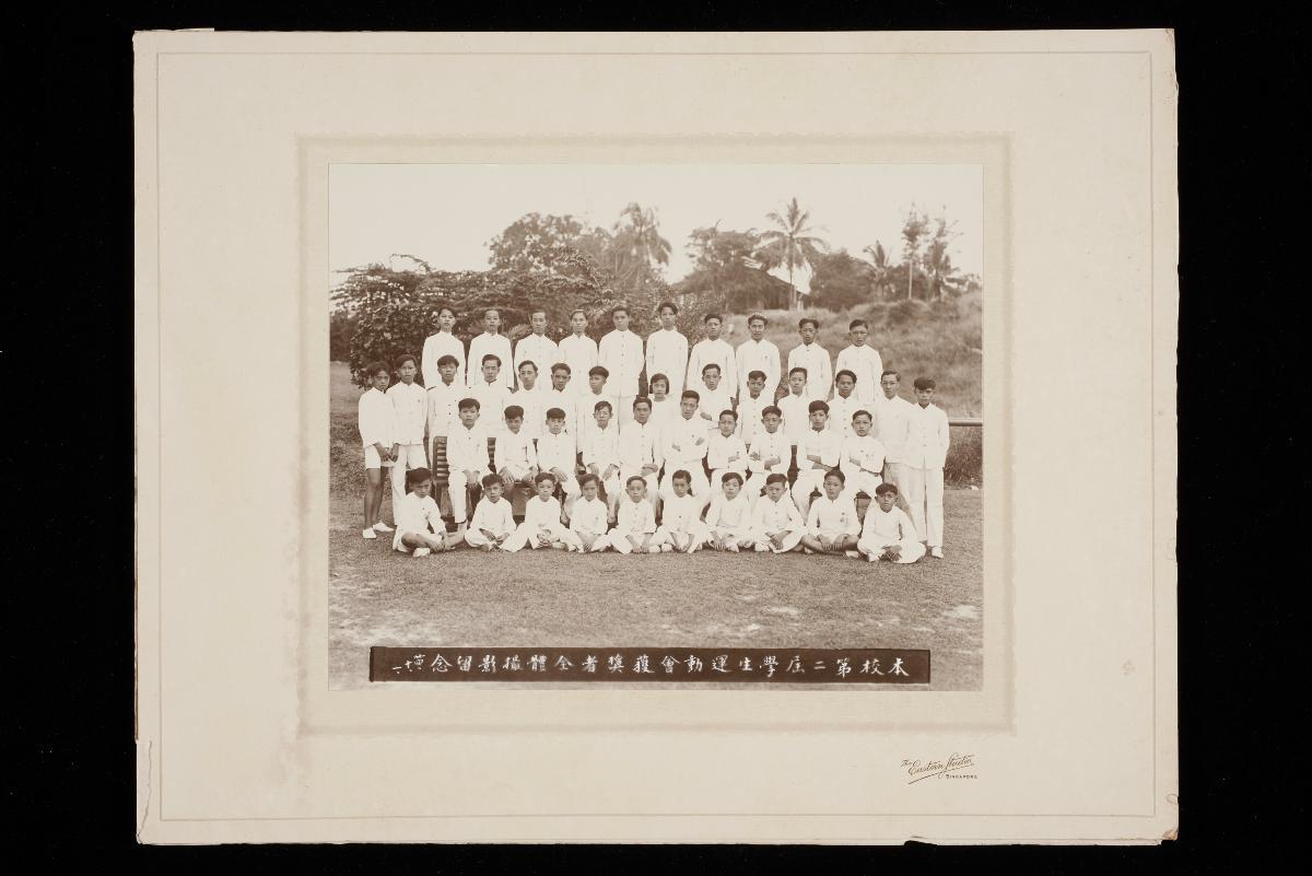 This photograph shows Tuan Mong School, established in 1907 in a shophouse at North Bridge Road. It was one of the first ‘new style’ Chinese primary schools opened in the first decade of the 20th century. These new schools differed from 19th-century privately-funded schools, which had no fixed curriculum or student intake. Its curriculum was closely modelled on that of schools in China and included subjects such as music and sport.