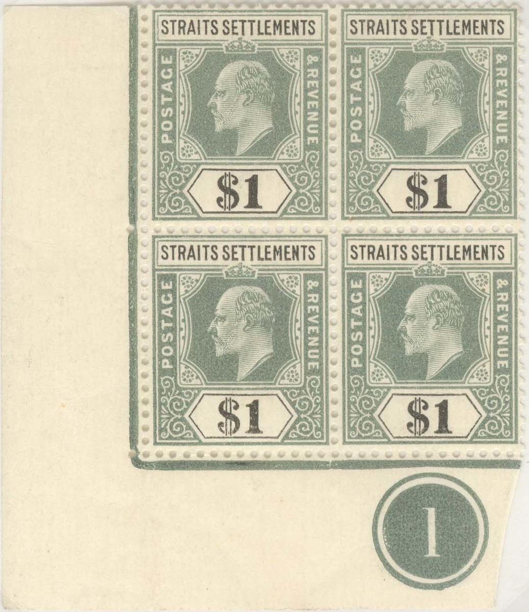 A block of four King Edward VII 4-cent stamps with purple shade on multiple Crown CA inverted watermark paper.