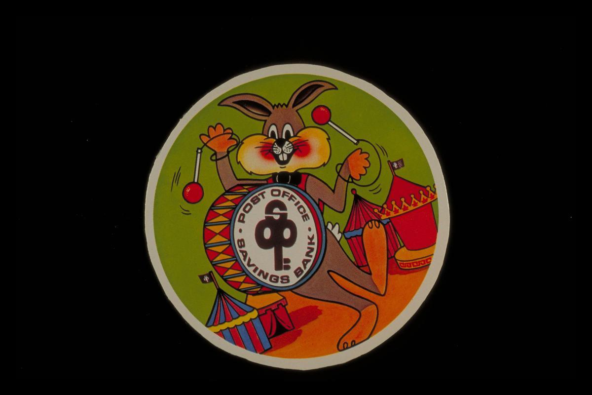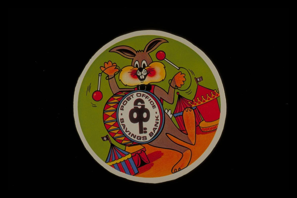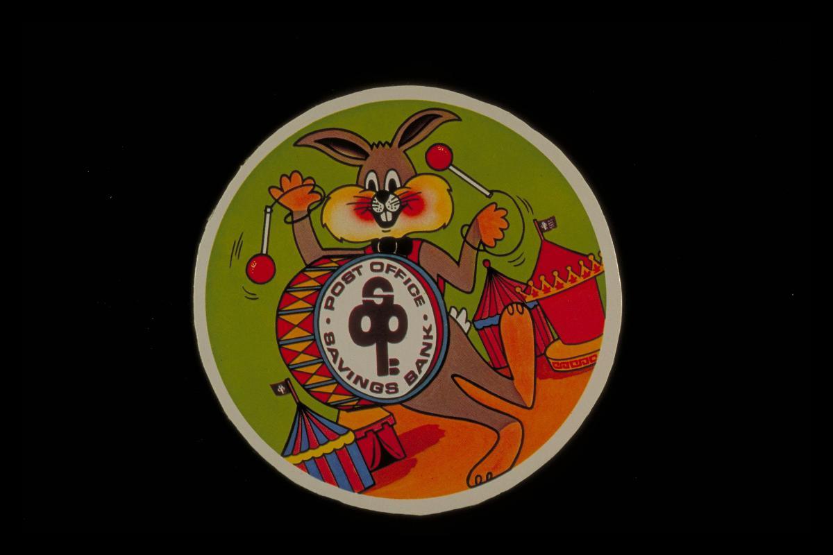 Sticker with Bugs Bunny, entitled "Post Office Savings Bank"