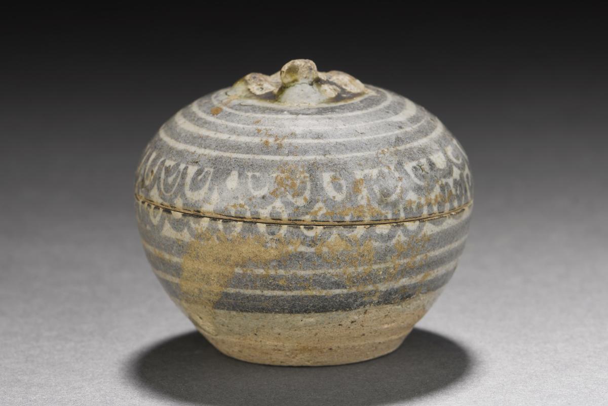 This box was probably formed and decorated as a two-piece mould. Boxes have been amongst the more popular products since the 13th century, together with bowls, kendis (water pot) and vases. This kidney-shaped box may have been used as a container for betel leaf or lime paste for betel chewing. They were also exported to Europe, where it is thought they were used as salt and pepper containers. These later Dehua wares of the Ming (1368-1644) and Qing (1644-1911) dynasties were more translucent and the glazes had a greater brilliance than the earlier wares. They are described as having the quality of milky glass or white marble.Dehua, located on the southeast coast of Fujian province, is well known for its production of white porcelain, known to Europeans as 'blanc de Chine'. The earliest Dehua porcelain was produced as early as the 14th century but the production and quality of these porcelain peaked around the 17th and 18th centuries.