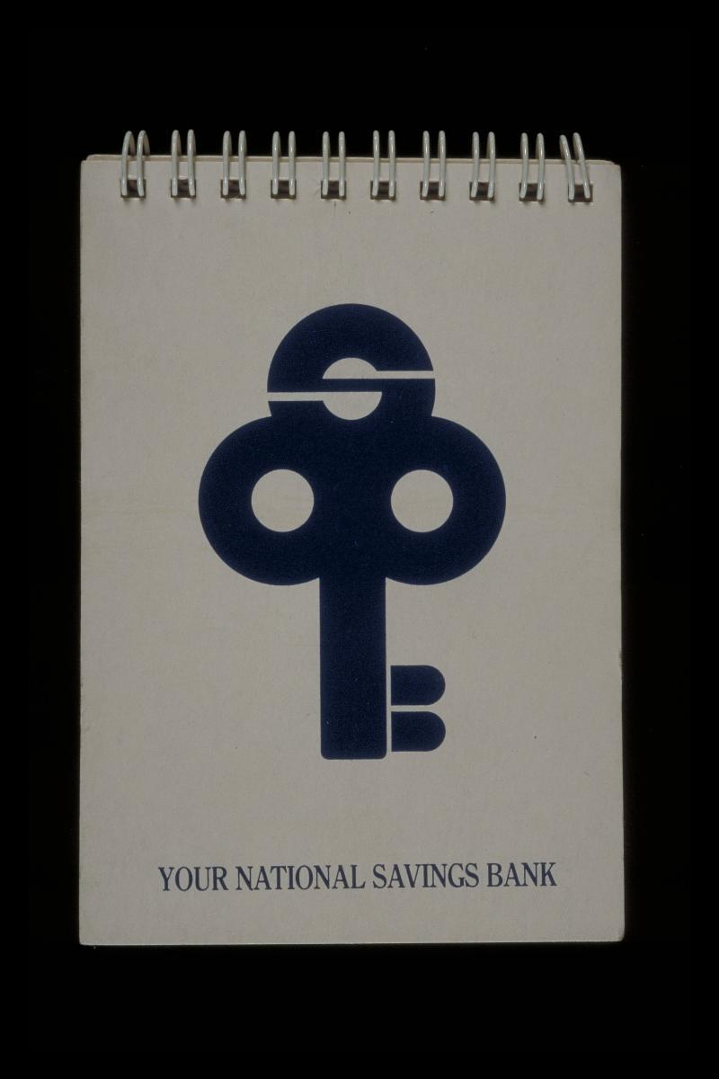 Notebook with slogan, ‘Your national savings bank’