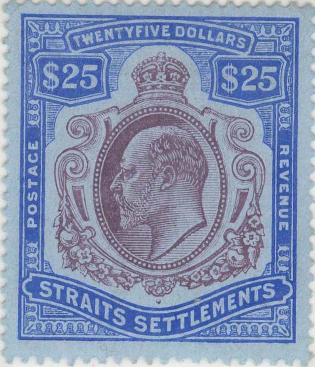 Specimen of King Edward VII Straits Settlements $25 high value definitive stamp issue of 1902-12.