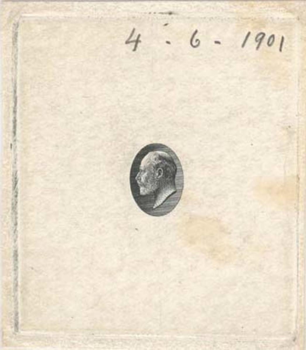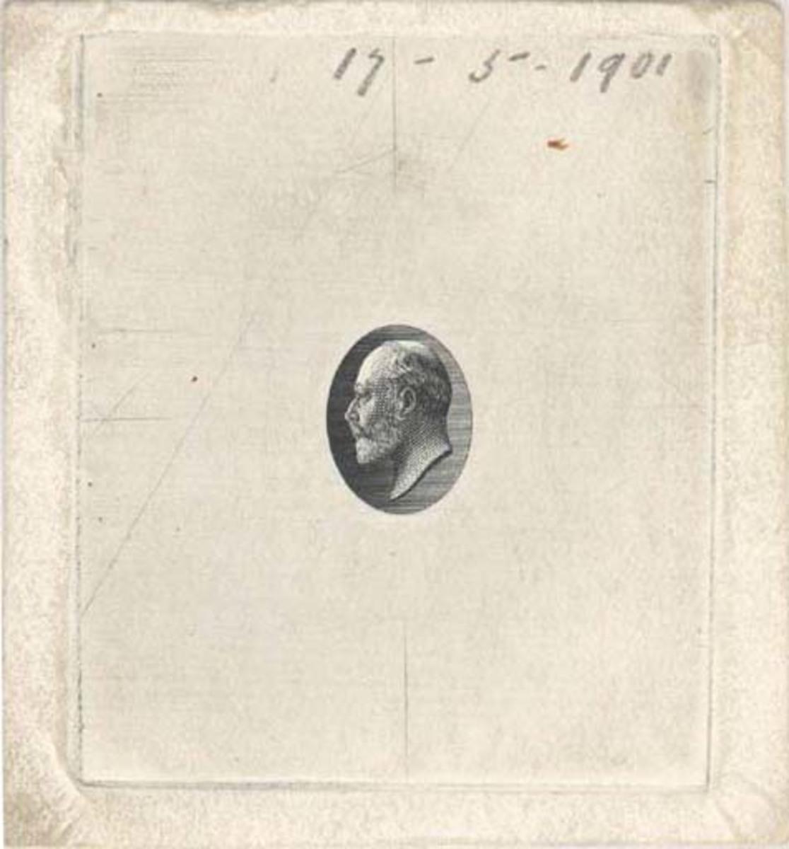 Colonial die proof depicting large King Edward VII head size without markings.
