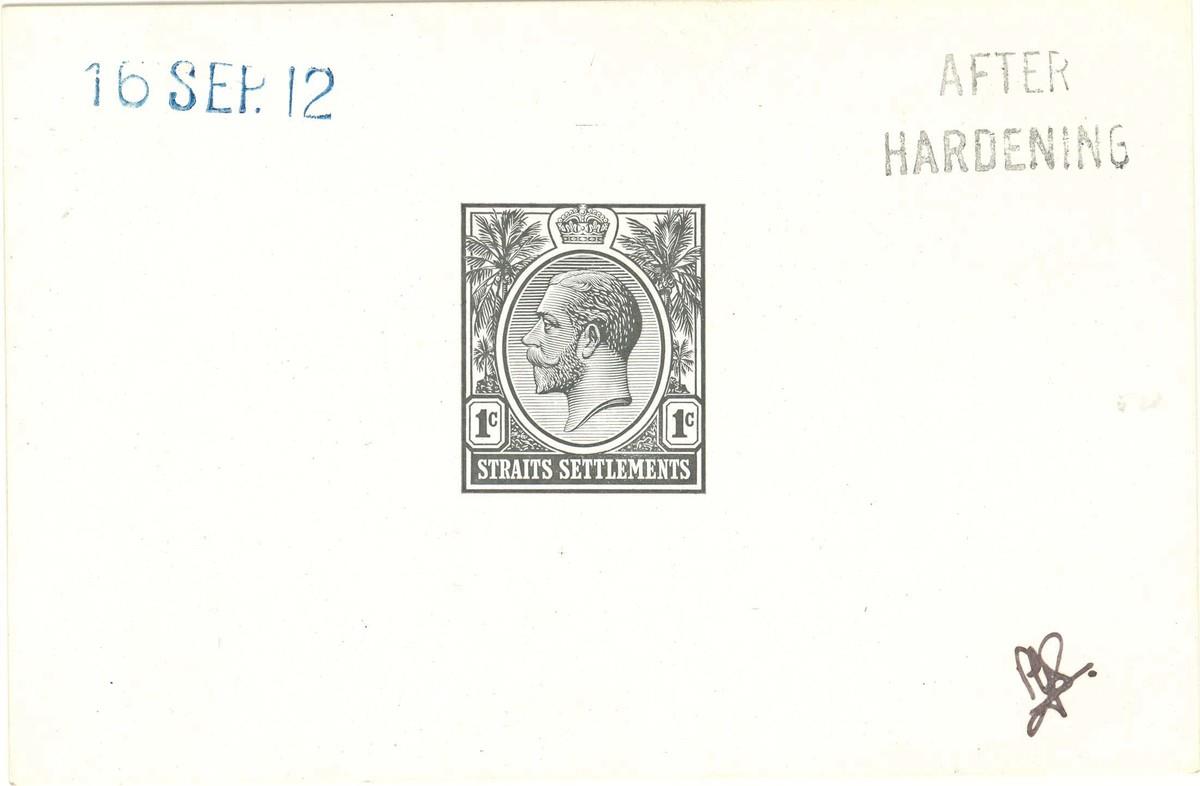 King George V 6-cent die proof of Kris design taken after striking dated "27/4/21".
