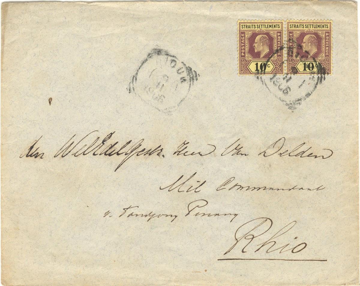 Unusual usage of Straits Settlements postcard bearing King Edward VII 1-cent stamp.
