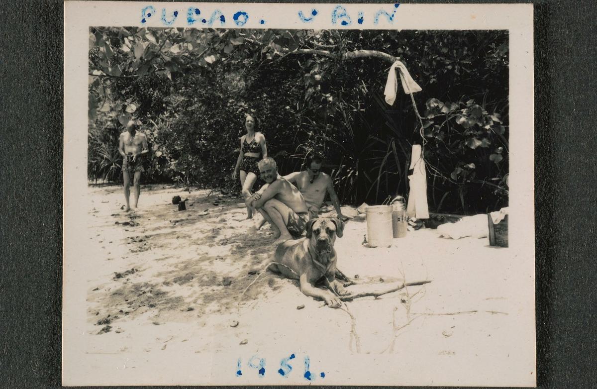 This photograph of two men on a beach comes from the album of an RAF pilot who served in Singapore, Ceylon and the Pacific between 1938 and 1939.Most of the RAF pilots who served in Singapore during the 1930s were stationed at Seletar Airbase in the northeastern part of the island. Built on a 600-acre site formerly belonging to Singapore United Rubber Plantations, the airbase was operational by 1928 and officially became an RAF station in 1930. The airbase also served as a civilian airport until 1937, when the Kallang Airport was opened to handle commercial flights. Seletar Airbase was designed to handle both conventional aircraft as well as seaplanes such as the Short Singapore III and Short Sunderland flying boats. The first batch of Singapore IIIs departed from Pembroke Dock in the United Kingdom for Seletar in January 1935 to re-equip Number 205 Squadron. The first of the new Sunderlands arrived in Seletar from Pembroke Dock in June 1938 for use by Number 230 Squadron.