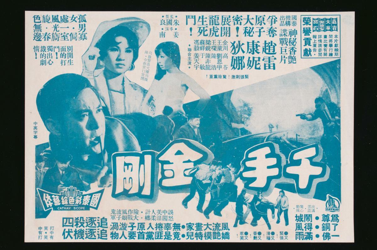 This handbill was used to advertise the Cantonese movie, ‘A Modern Idol’ (摩登济公, Modengjigong). During its Singapore run, the movie was screened at the King’s Theatre (璇宫, Xuangong), Ruby (宝石, Baoshi) and Happy World (快乐, Kuaile) cinemas.Between the 1950s and 1960s, most Mandarin, Cantonese and other Chinese-dialect movies were made in Hong Kong by film production companies with financial support from Singapore-based film studios such as Shaw Brothers, Cathay and Kong Ngee (光艺, Guanyi). These studios were also involved in the distribution and exhibition of these movies in Singapore and the rest of Southeast Asia through their network of cinemas. In the early 1970s, Mandarin movies from Taiwan became popular, but by the late 1970s, Hong Kong movies were dominant once more.
