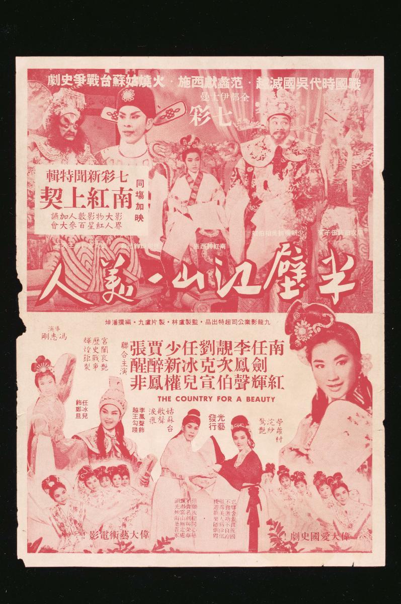 This handbill was used to advertise the Cantonese movie, ‘The Thievish Beauty’ (贼美人, Zeimeiren), also known as ‘The Thief with Baby Face’. During its Singapore run, the movie was screened at the Metropole (金华, Jinhua), Venus (金都, Jindu), Hollywood (好莱坞, Haolaiwu) and Marlborough (曼舞罗, Manwuluo) cinemas.Between the 1950s and 1960s, most Mandarin, Cantonese and other Chinese-dialect movies were made in Hong Kong by film production companies with financial support from Singapore-based film studios such as Shaw Brothers, Cathay and Kong Ngee (光艺, Guanyi). These studios were also involved in the distribution and exhibition of these movies in Singapore and the rest of Southeast Asia through their network of cinemas. In the early 1970s, Mandarin movies from Taiwan became popular, but by the late 1970s, Hong Kong movies were dominant once more.
