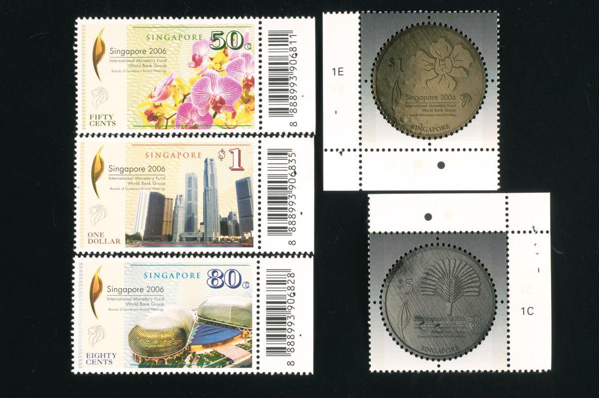 This is one of the five stamps issued as a set by Singapore Post on 13 September 2006 to commemorate Singapore hosting the Annual Meetings of the Board of Governors of the International Monetary Fund (IMF) and World Bank Group in September 2006. This is an 80-cent stamp which features the Esplanade.