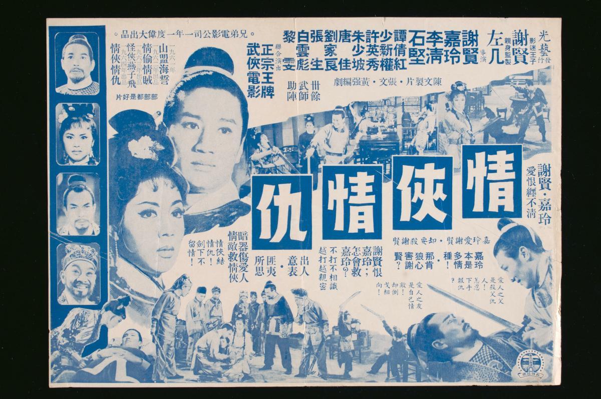 This handbill was used to advertise the Cantonese movie, ‘Love and Affection’ (情与爱, Qingyuai), also known as ‘Love and Passion’. During its Singapore run, the movie was screened at the King’s Theatre (璇宫, Xuangong), Ruby (宝石, Baoshi) and Happy World (快乐, Kuaile) cinemas.Between the 1950s and 1960s, most Mandarin, Cantonese and other Chinese-dialect movies were made in Hong Kong by film production companies with financial support from Singapore-based film studios such as Shaw Brothers, Cathay and Kong Ngee (光艺, Guanyi). These studios were also involved in the distribution and exhibition of these movies in Singapore and the rest of Southeast Asia through their network of cinemas. In the early 1970s, Mandarin movies from Taiwan became popular, but by the late 1970s, Hong Kong movies were dominant once more.